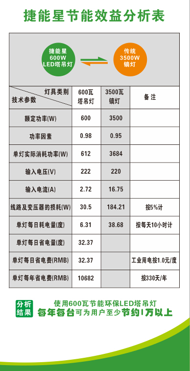 捷能星600W led塔吊燈可代替3500W鏑燈!!一年省百萬不再是夢。