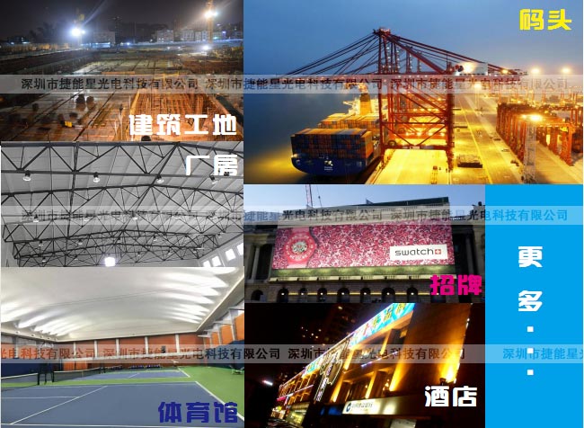 建筑工地、樓體亮化、酒店、碼頭、廠房、加油站、足球場、高爾夫球場、綠化景觀照明等。