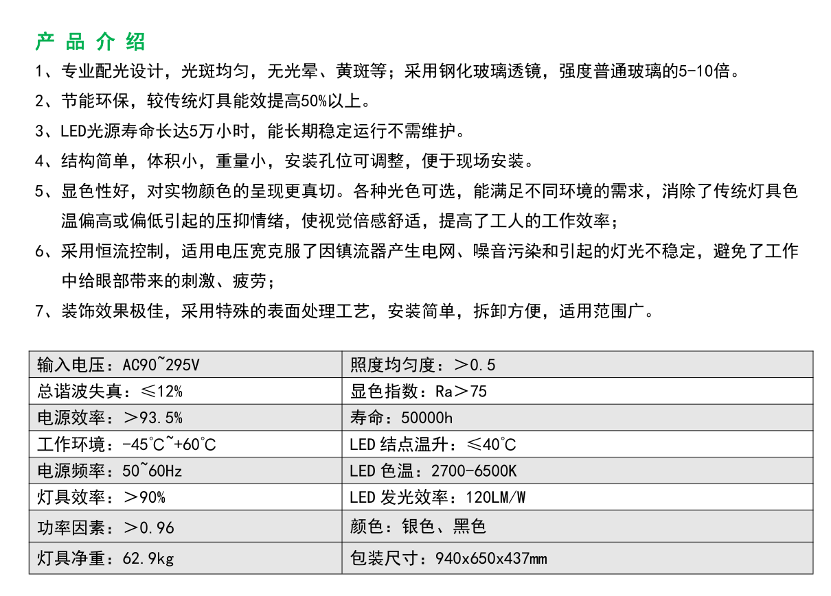 可用于露天體育場、高爾夫球場、大型公園、廣場照明:大型港口機械(輪胎吊,起重機,門吊,橋吊等)照明;